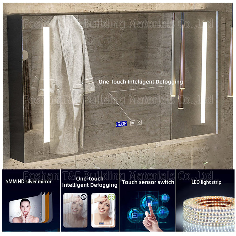 Smart LED Mirror – Defogger, time display, and soft light touch controls.