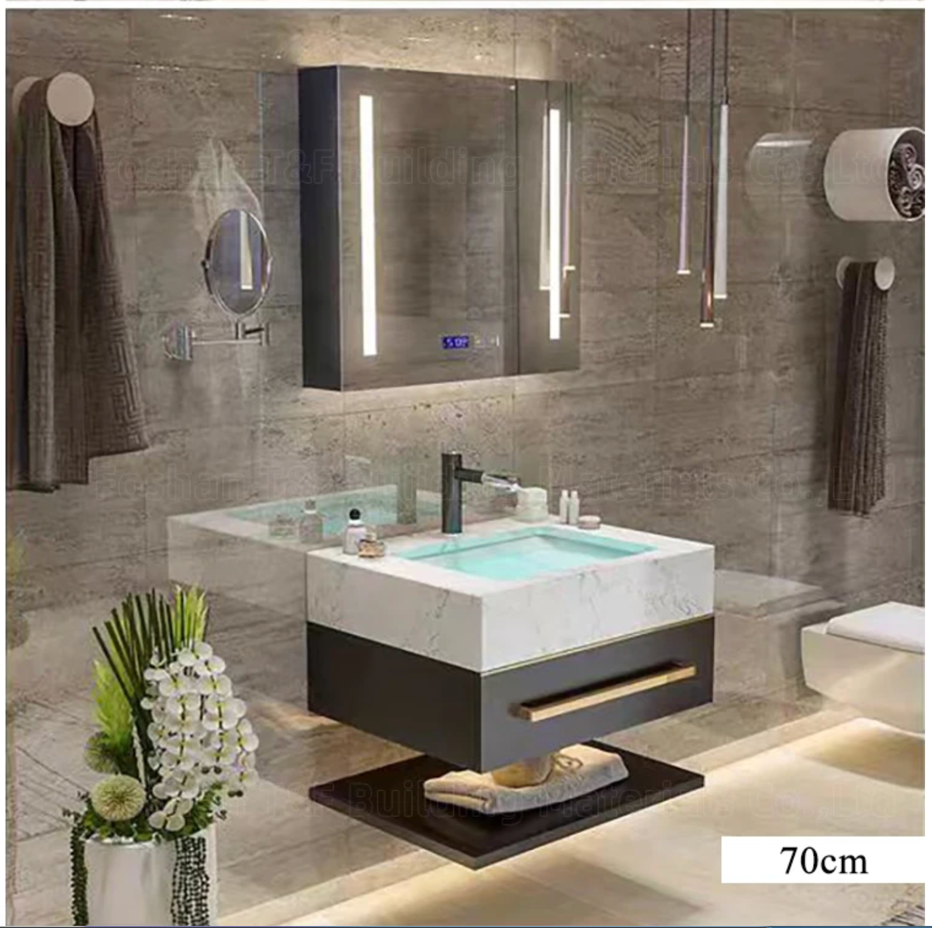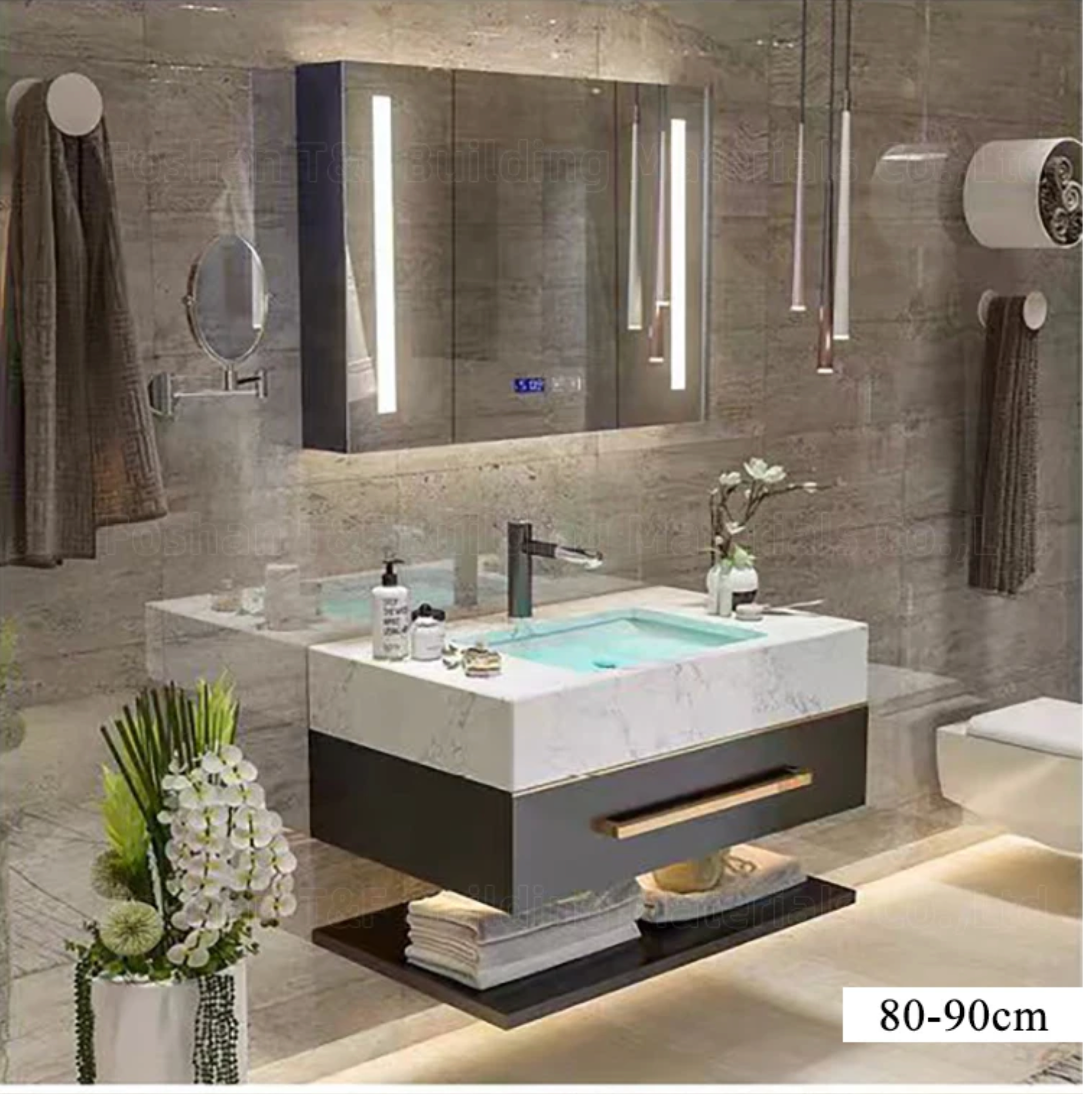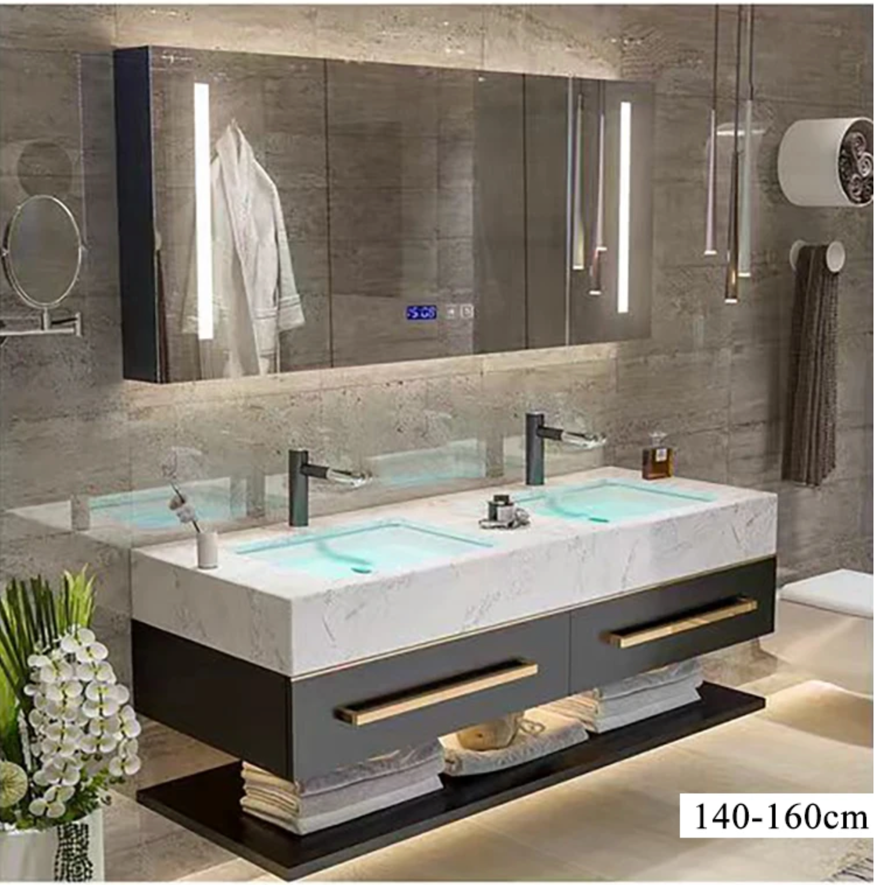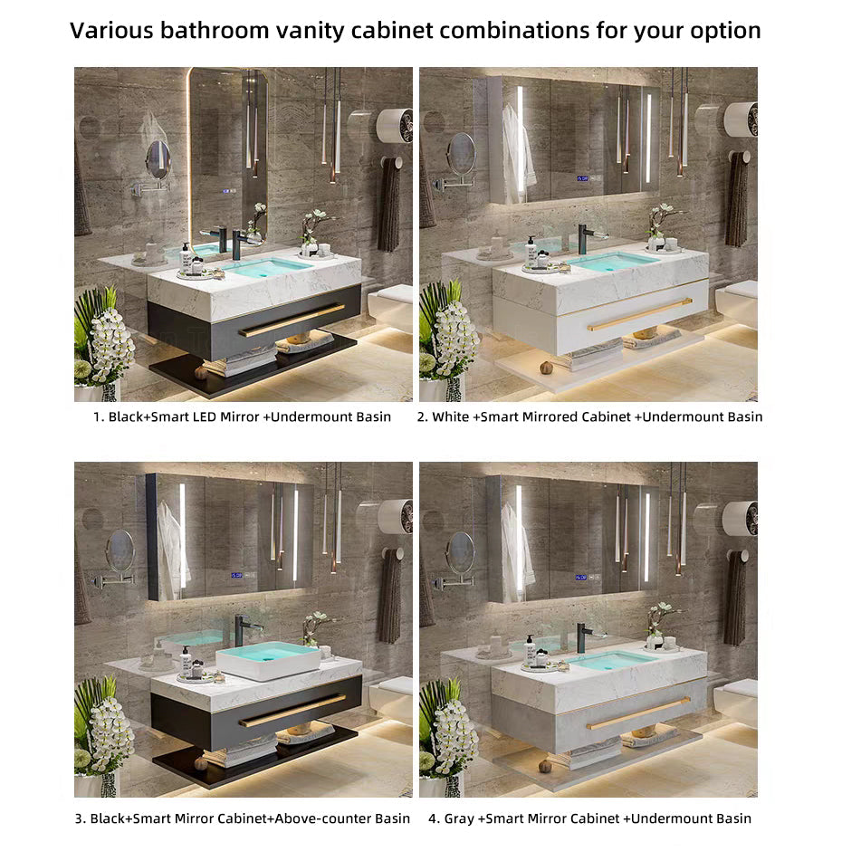 Upgrade your bathroom with a centerpiece of modern design and functionality. This luxury double sink vanity set features a sleek wall-mounted cabinet, premium sintered stone countertop with integrated basins, and a smart LED mirror with defogging and touch control. Designed for hotels, apartments, and high-end homes, it delivers durability, storage, and elegance in one package.